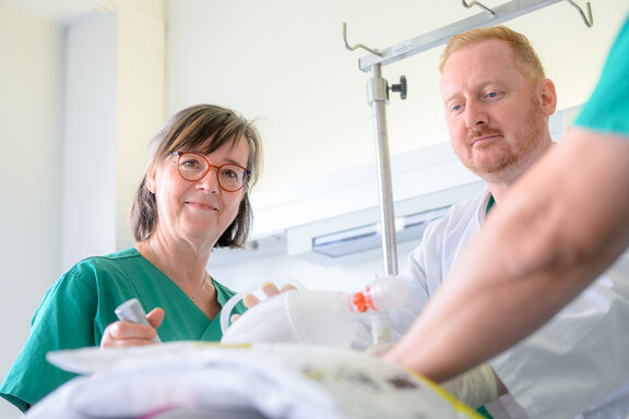 In der Klinik für Anästhesie und Intensivmedizin werden zur Versorgung der operativen Patienten/innen alle gängigen modernen Anästhesieverfahren von der balancierten Anästhesie als Larynxmasken – oder Intubationsnarkose bis zur TIVA (BIS-Monitoring, Video-Laryngoskopie) sowie ultraschallgesteuerte Regionalanästhesien mit und ohne Katheter, als alleiniges Anästhesieverfahren oder in Kombination mit einer Vollnarkose, durchgeführt. Jährlich werden ca. 4.000 Anästhesien in 6 OP-Sälen geleistet. Die Abteilung versorgt die operativen Fächer Allgemein- und Visceralchirurgie, Orthopädie/Unfallchirurgie, Urologie und Gynäkologie/Geburtshilfe. Ebenso werden Narkosen für die Endoskopie und die Kinderklinik durchgeführt. Der Abteilung untersteht die organisatorische Leitung der interdisziplinären Intensivstation mit 12 Betten. Alle Betten sind als Beatmungsbetten konzipiert. Beatmungsgeräte und Monitoring sind auf dem neuesten Stand der Technik. Erweitertes hämodynamisches Monitoring (PiCCO) und volatile Sedierung kommen ebenso zur Anwendung wie diagnostische und therapeutische Bronchoskopien (incl. bronchoskopisch gesteuerter DPT), ultraschallgesteuerte Interventionen (Pleurapunktionen, Gefäß-Katheteranlagen) oder die Anlage von Thoraxdrainagen. Die Abteilung für Anästhesie und Intensivmedizin ist ebenso in die Schockraumversorgung des lokalen Traumazentrums eingebunden.